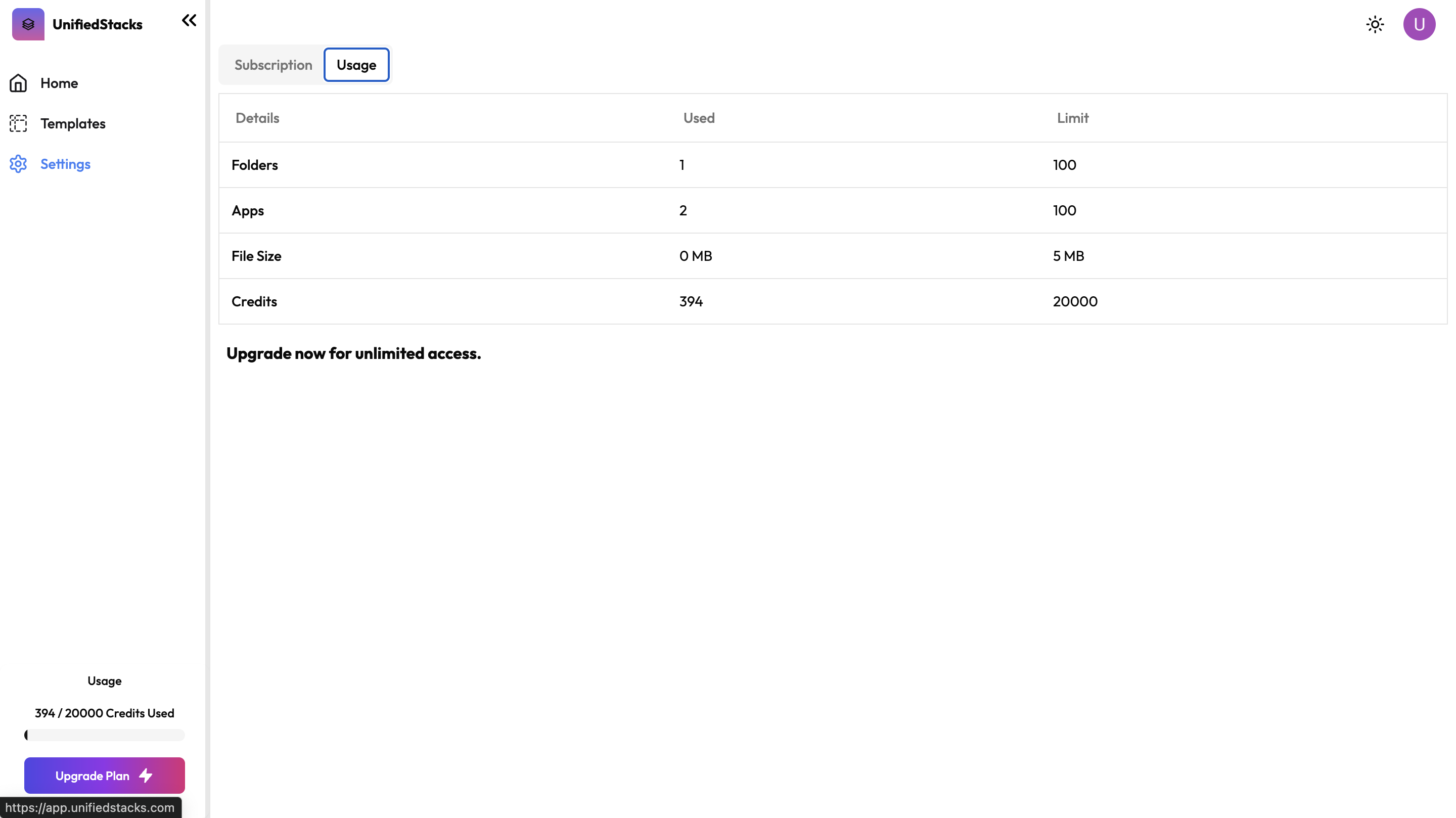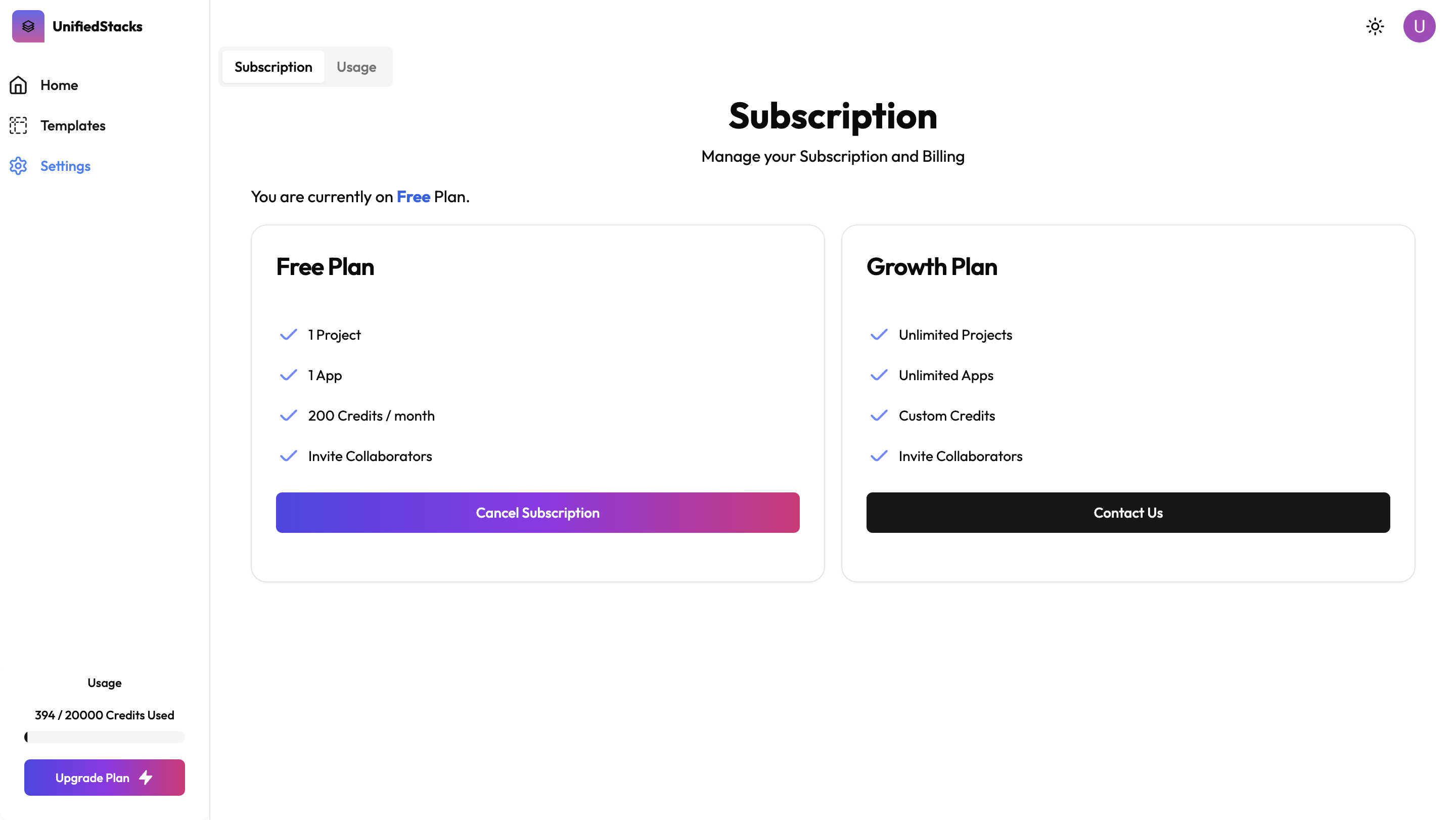 You can manage your plans and check usage from settings page.