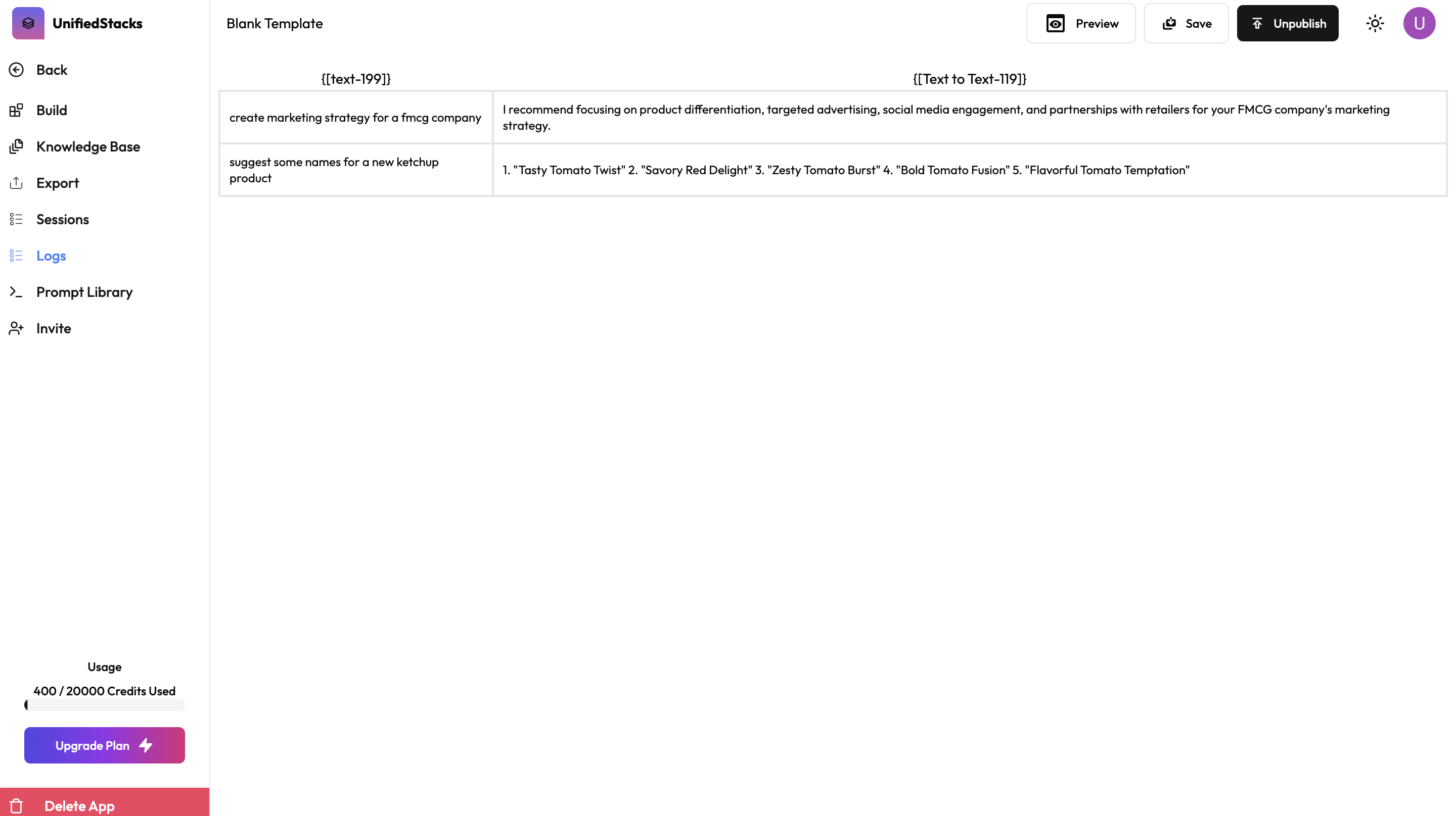 1. Top bar - You can edit the name, preview, save and publish the application from the top navigation bar.